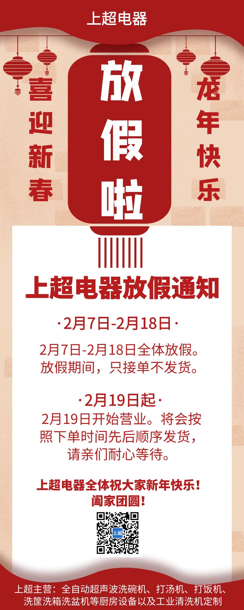 上超電器春節(jié)放假通知