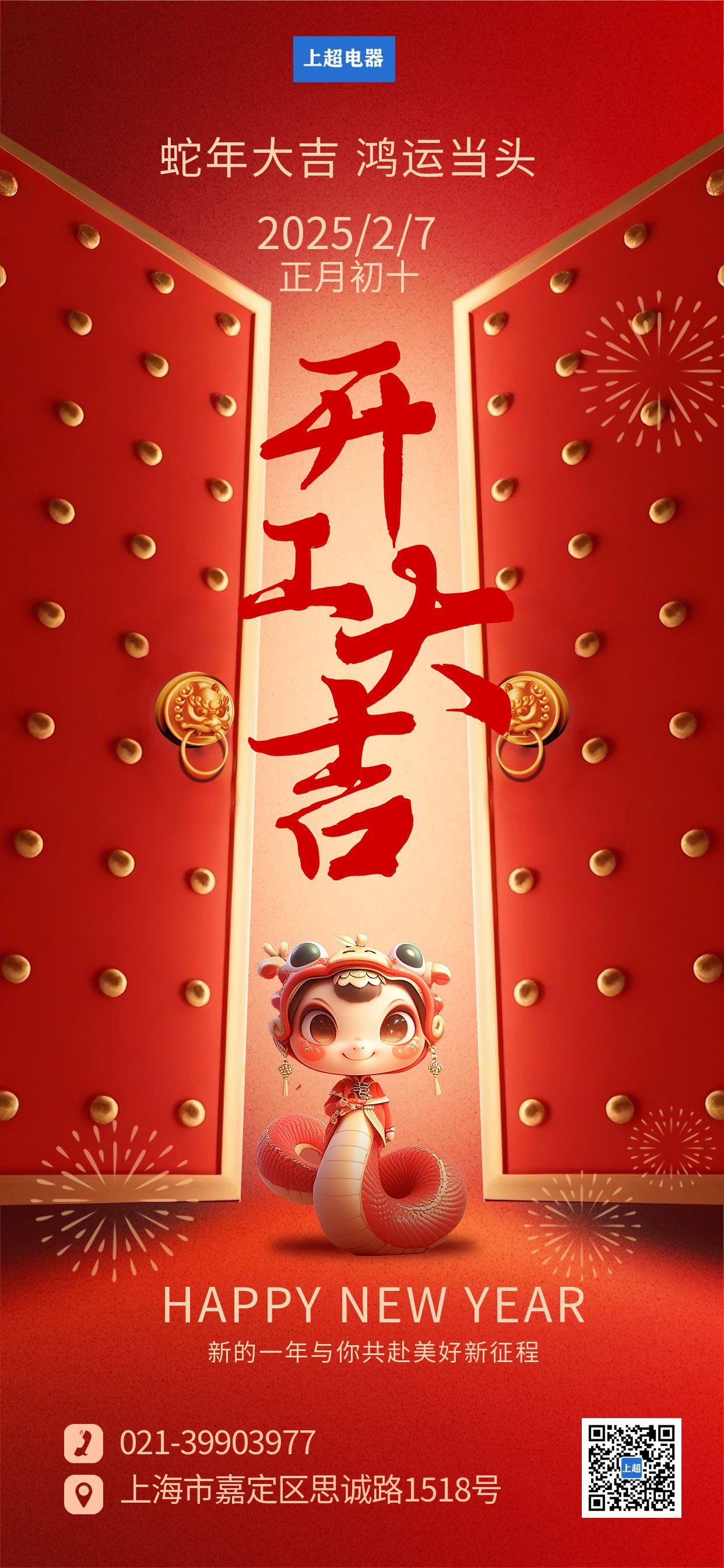 新春伊始,萬(wàn)象更新!值此乙巳蛇年開(kāi)工之際,上超電器向全體員工、合作伙伴及廣大客戶致以最誠(chéng)摯的祝福:開(kāi)工大吉,財(cái)源廣進(jìn),萬(wàn)事順?biāo)欤?/span>