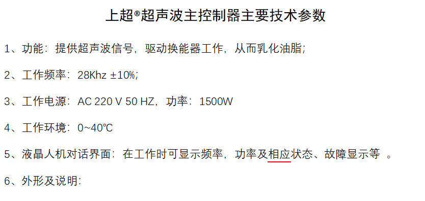 提供超聲波信號,驅動換能器工作,從而乳化油脂;